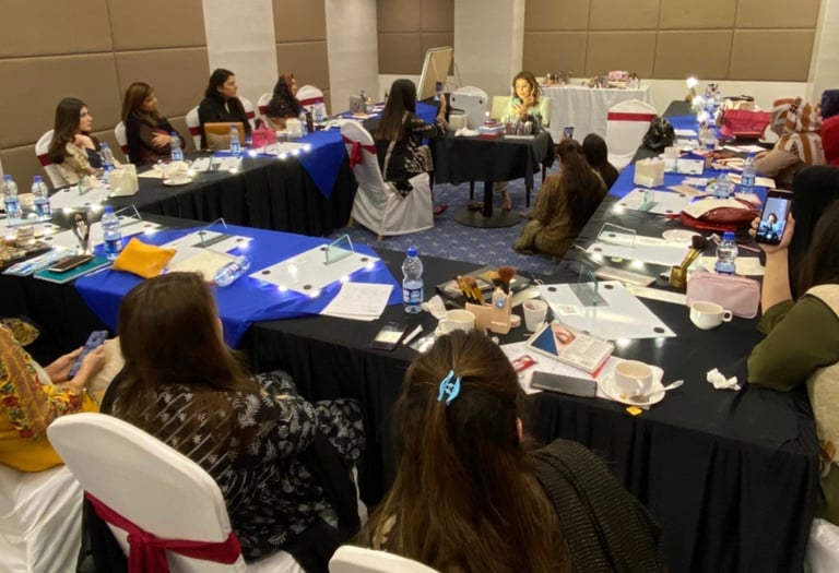 Elevate your makeup skills with expert-led masterclasses by Amna Kardar! Whether you're a beginner, aspiring artist, or pro, I offer group makeup classes, private one-on-one lessons, virtual training, and digital courses tailored to your needs. Learn advanced makeup techniques, bridal artistry, contouring, and celebrity-inspired looks with hands-on coaching. Plus, my exclusive personal shopping services ensure you get the best makeup products for your skin tone and style.